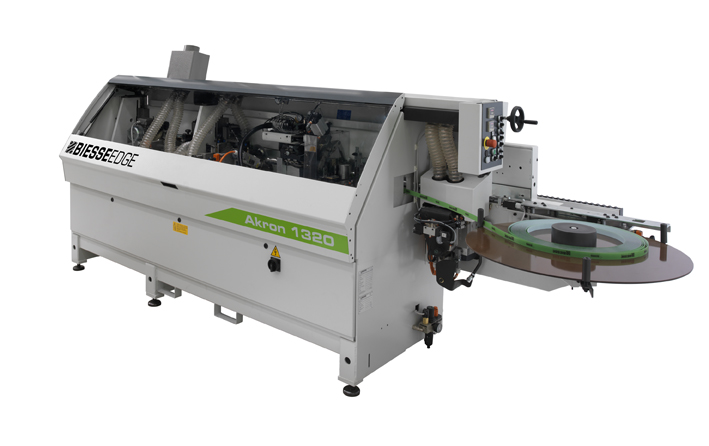 The Biesse Akron 1300 series offers a full line for the entry-level shop with European Technology and many features normally only found on larger machines. All Akron 1300 series machines are equipped with an industrial gluing system with a precision glue roller and an end trim unit on precision guides with pneumatic tilt feature. Other units include: top/bottom tilt trimming unit. And for that complete perfect finish, additional options such as: Pre-milling trimming unit, Corner Rounding system, Radius profile scraper, Flat glue joint scraper and a buffing unit can be added to this series.